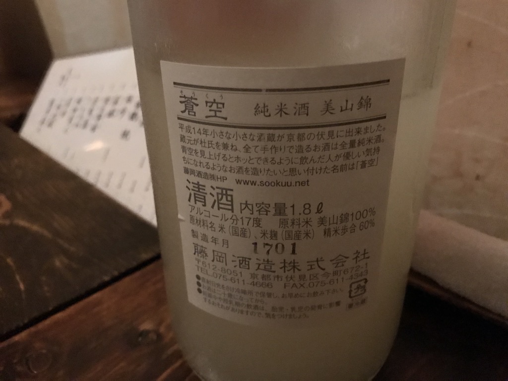 2017-07-21 日本酒 蒼空 純米生酒 美山錦 藤岡酒造 久々の蒼空です。 名前とは真逆の印象の赤いラベル、灼熱の太陽のイメージなのかなと思ったら、17年1月のお酒でした。 相変わらず濁ってますね。 味わいは2個前の若波に近い感じです。 おりがらみなだけあってコクを感じます。 使用米:美山錦 精米歩合:60% アルコール数:17%