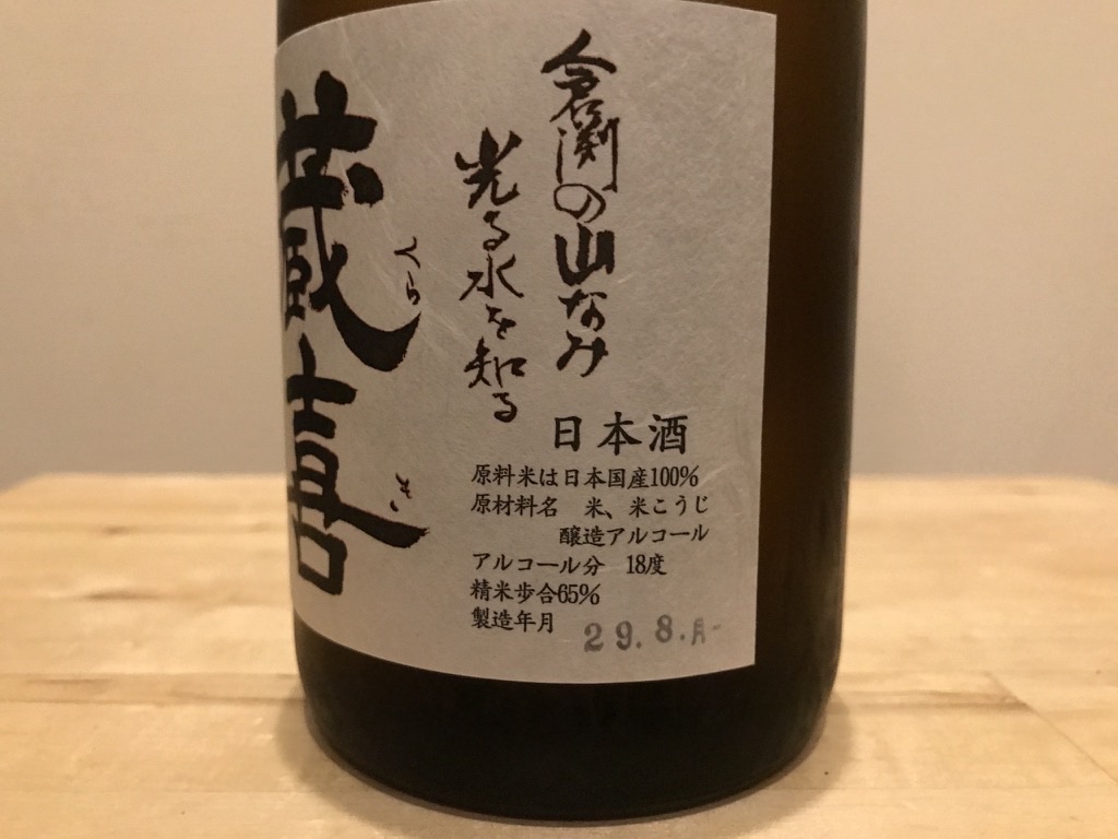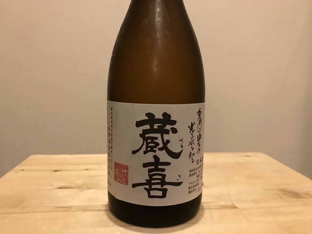 2017-09-11 日本酒 蔵喜 牧野酒造 群馬県にある大盃を醸す牧野酒造に行ってきました。 こちらの直売所でしか買えない限定商品がこちらの蔵喜 本醸造でしょうか普通酒でしょうか、ラベルからはわからないです。 旨味と酸味を程よく感じる食中酒向きなお酒でした。 精米歩合:65% アルコール数:18%