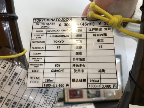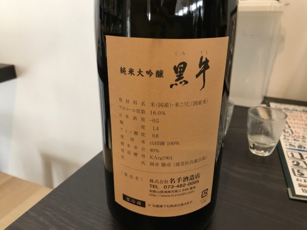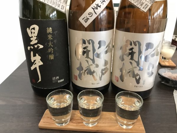右から純米吟醸原酒の江戸開城山田錦、江戸開城雄町、純米大吟醸黒牛です。