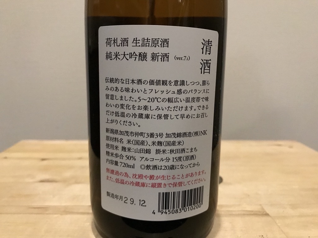 荷札酒 生詰原酒 純米大吟醸 新酒 加茂錦
