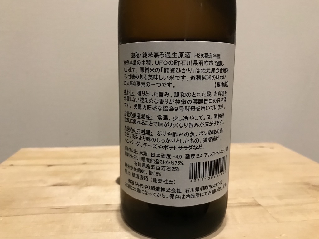 裏ラベルに書いてあるとおり、温度が上がると若干角がとれてまろやかになりますね。