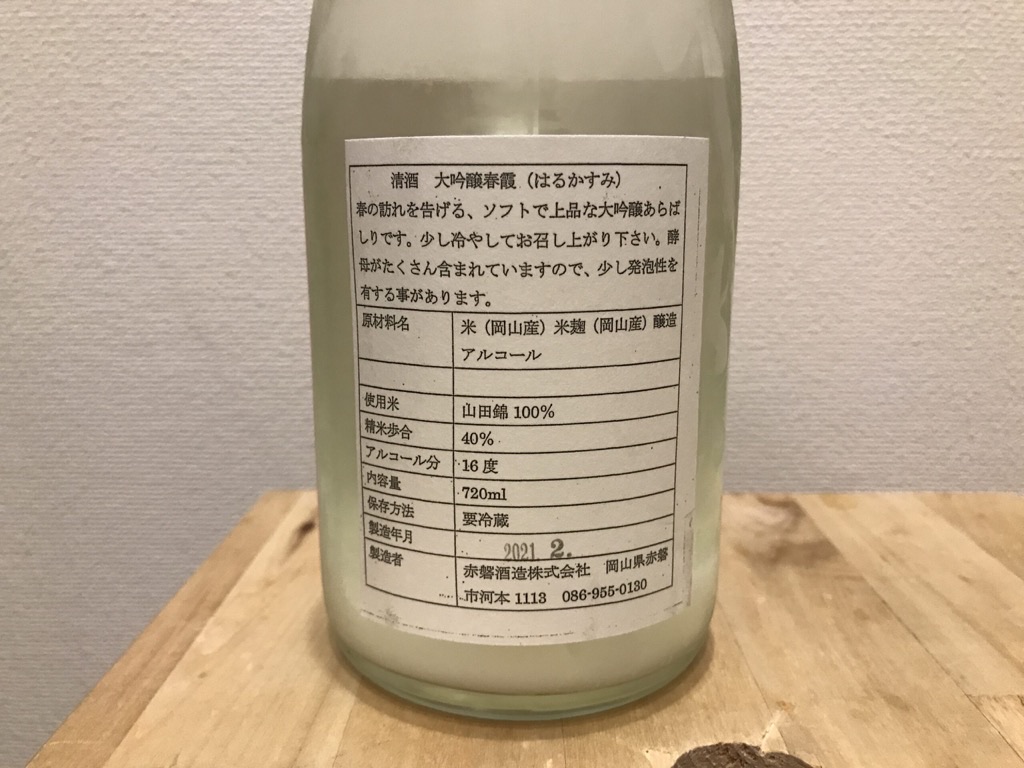 春霞 桃の里大吟醸 立春しぼり 赤磐酒造