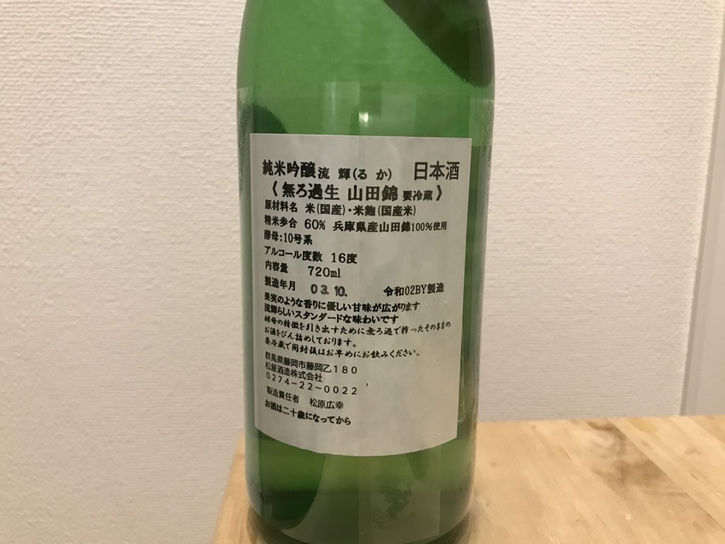 流輝 純米吟醸 無濾過生 山田錦 松屋酒造