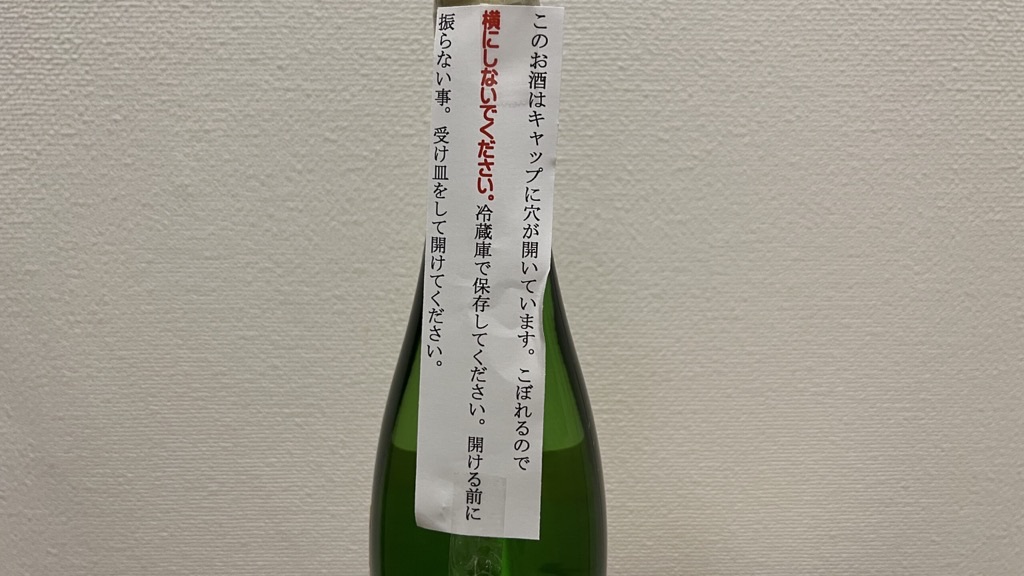 いかにも吹き出しそうな注意書きがありますが、輸送時にガスが抜けたのかオリを撹拌しても吹く気配なし