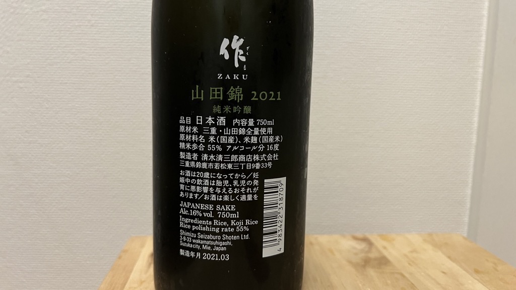 2022-09-12 日本酒 作 純米吟醸 山田錦 清水清三郎商店 久々の作 香りはパイナップルのような 口に含んでもパイン トロピカルな感じ 開栓して何日か経つと辛味が立ってくるような 使用米:山田錦 精米歩合:55% アルコール数:16%