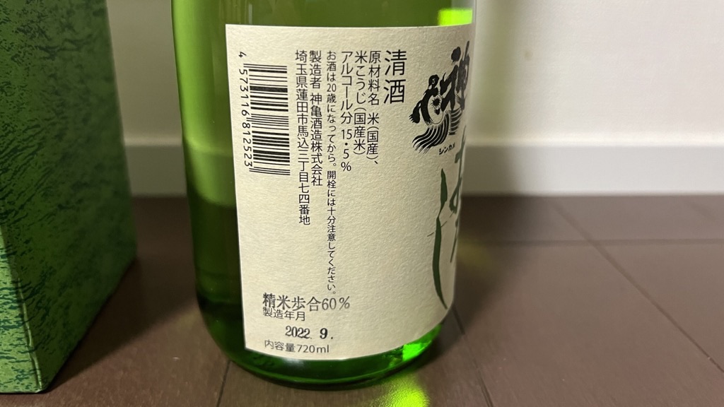 2022-11-09 日本酒 神亀 手作り純米酒 ひやおろし 神亀酒造 神亀と言ったらお燗みたいなイメージがあるけど、常温で 熟成感のあるコク、米の甘み的な なんか日本酒って感じ 精米歩合:60% アルコール数:15.5%