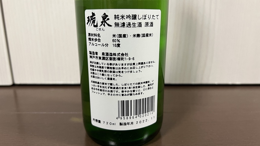 琥泉 しぼりたて 無濾過生原酒