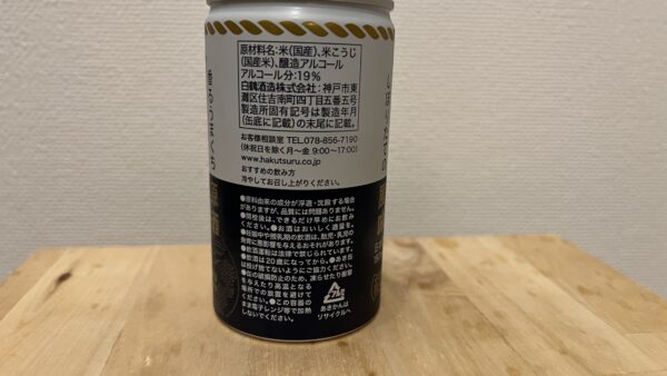 2023-03-29 日本酒 香るうまくち ハクツル 原酒 見た目からスッキリとした味わいを想像させるが、THE日本酒みたいな味 本醸造なのかな? 缶なのでそのまま湯煎で温められるのはいいかも アルコール数:19%