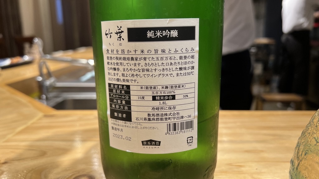 2023-07-09 日本酒 竹葉 純米吟醸 数馬酒造 前に飲んだイメージでフルーティー系かなと思いきや、そこまででもなく 華やかってよりは旨味を感じるお酒 使用米:五百万石 精米歩合:50% アルコール数:15%