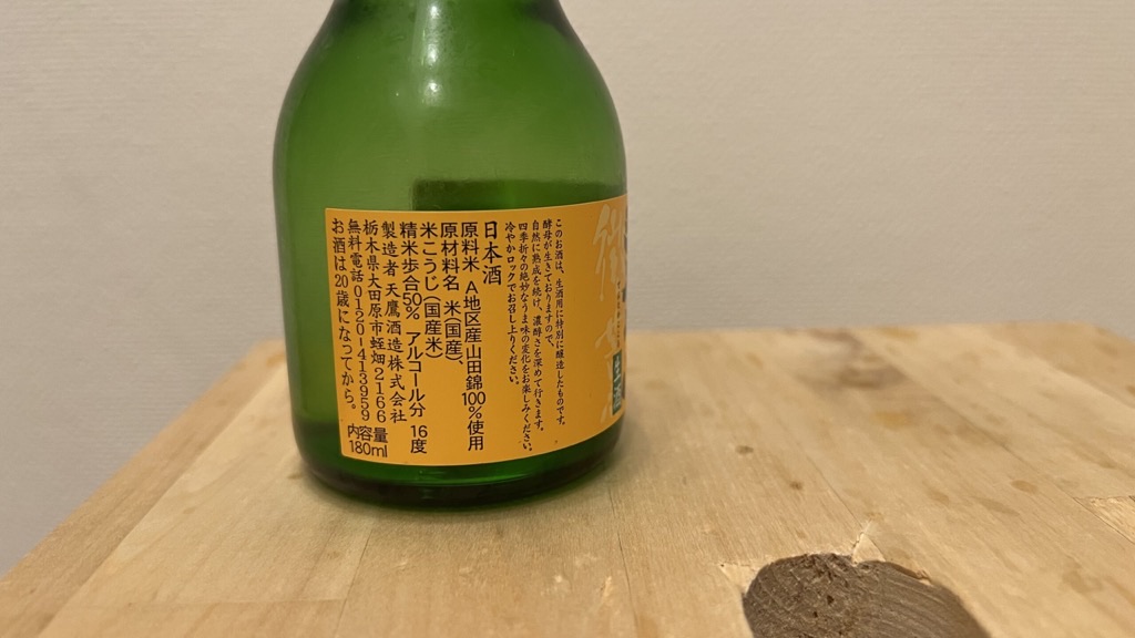 2023-10-31 日本酒 純米大吟醸 天鷹心 生酒 天鷹酒造 こちらも蔵元まで行ってきました。 栃木にある天鷹酒造です。 ここでは純米大吟醸 天鷹心 生酒を買ってきました。 そんなに飲めないのでちっちゃいボトルの方をピックアップ フルーティーでスイスイいけちゃう味わいでした。 直売所で、これの生酛の方を試飲して、前回の東力士の1年ものと3年ものの中間的な味わいだったので、生酒の方もそんなに好みじゃないかなって小さいボトルにしたのですが、こちらは好みの酒質でした。 使用米:山田錦 精米歩合:50% アルコール数:16%