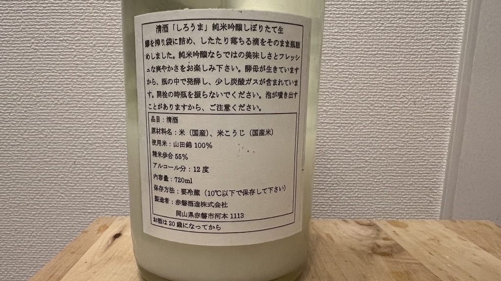 桃の里 しろうま 純米吟醸しぼりたて生 赤磐酒造