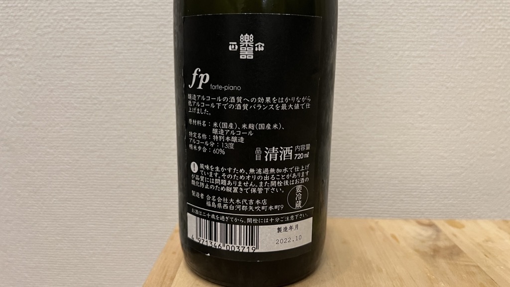 楽器正宗 fp forte-piano 特別本醸造 大木代吉本店