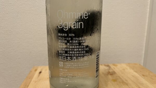2023-07-09 日本酒 Ohmine 3grain 大嶺酒造 香りはパインのような少しアルコール香が立つような 味わいもトロピカルで甘め でも酸味とアルコールが立つ感じ 純米吟醸以上を飲んでみたい 使用米:愛山 精米歩合:60% アルコール数:15%