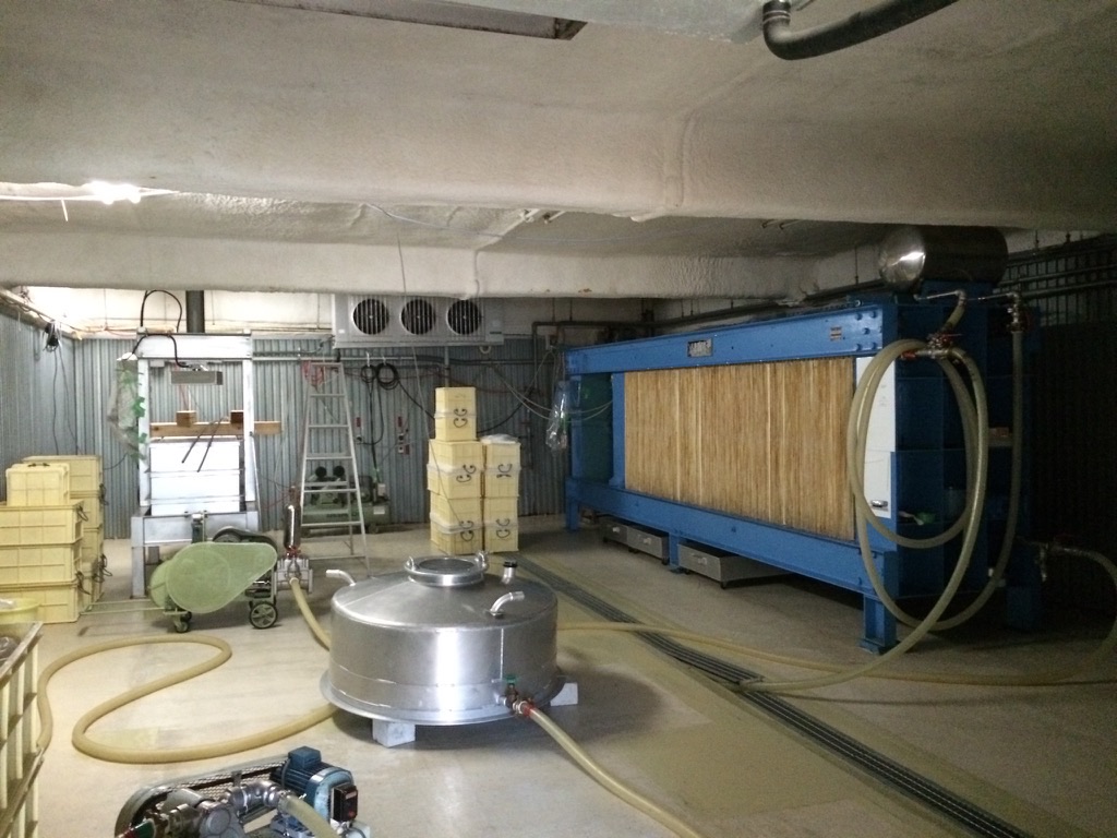 1階はずらーっと並んだタンクと、こちらが多分本当の圧搾室がありました。