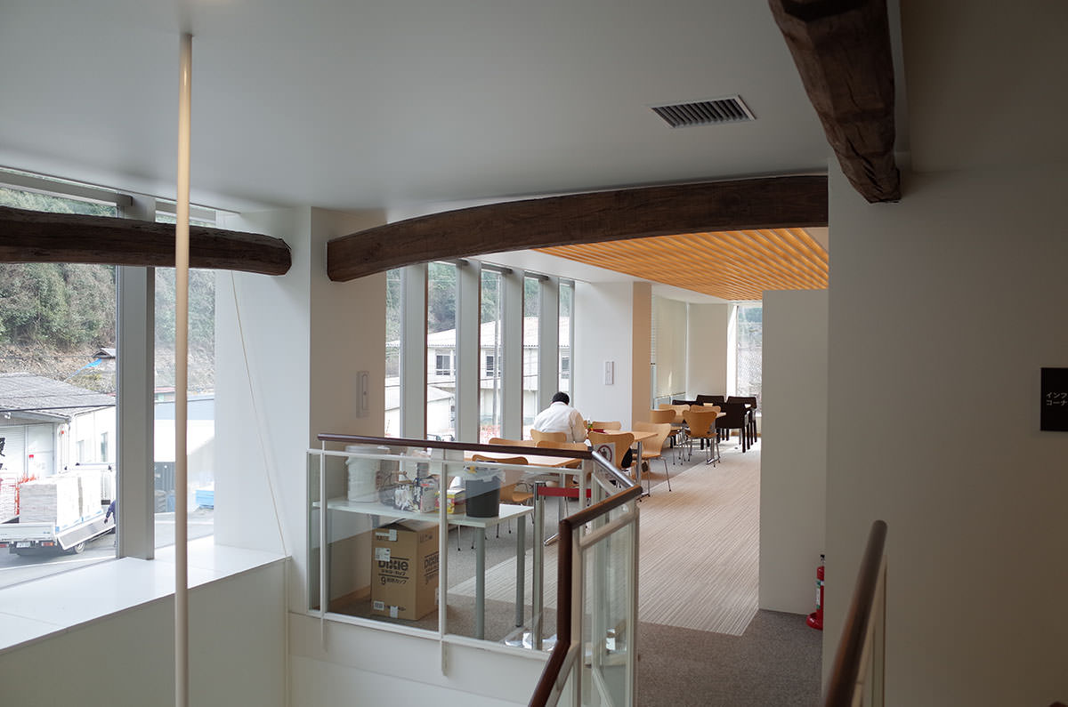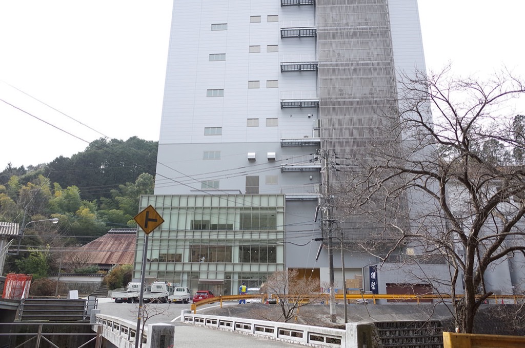 のどかな自然の風景に新しいビルはひときわ目立ちます。