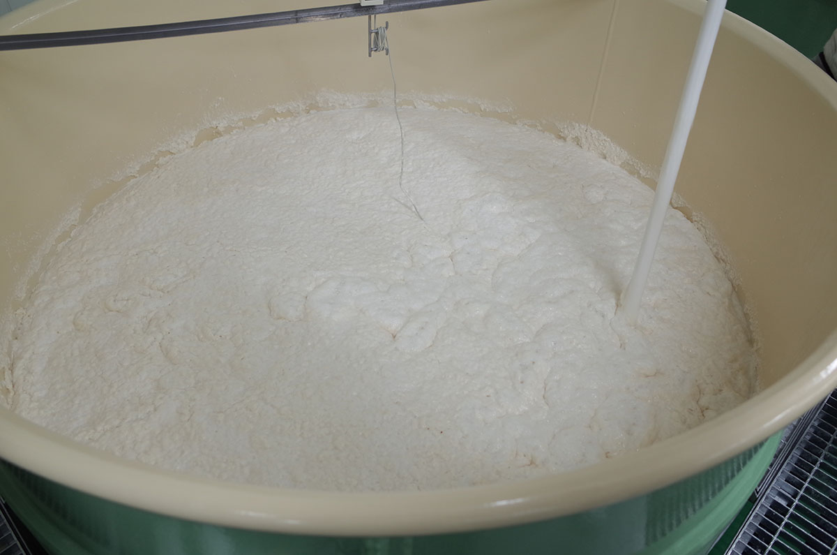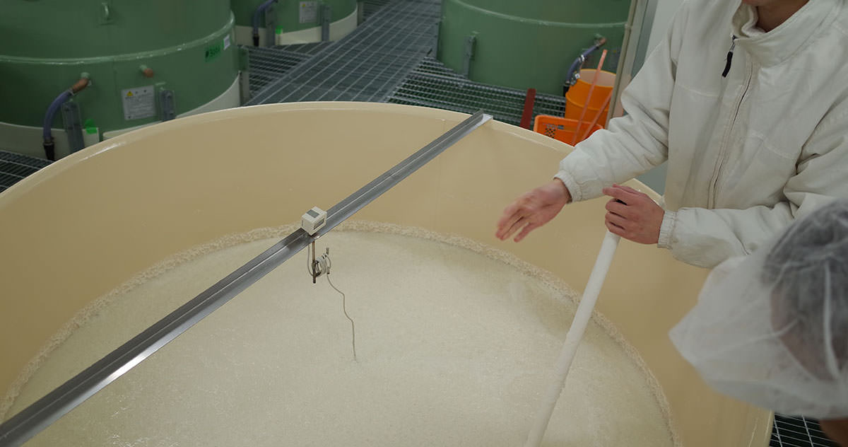 仕込みの日数に分けてタンクの中を見せてもらいました。こちらは日数が浅いタンクでまだ発酵があまり進んでない状態です。