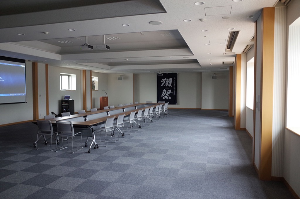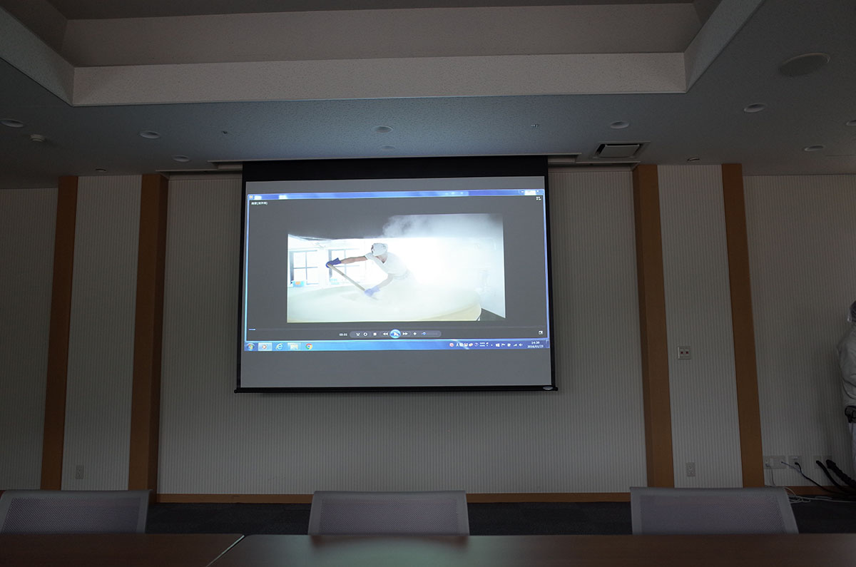 こちらの会議室で見学できない部分を動画で説明してくれます。