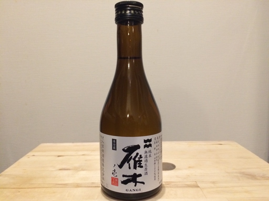 2016-02-05 日本酒 雁木 純米無濾過生原酒 八百新酒造 ラベルが新しくなった雁木です。 純米の無濾過生原酒です。 香りはうっすら香る程度です。 まずは冷酒でいただきました。 いつものフルーティーさは抑えめで、しっかりした旨味と酸味を感じます。 お燗にすると、アルコールは立ちますがまろやかでほっこりする食中酒になります。 燗上がりするお酒だなと思いました。 使用米:山田錦 精米歩合:60% アルコール数:17%