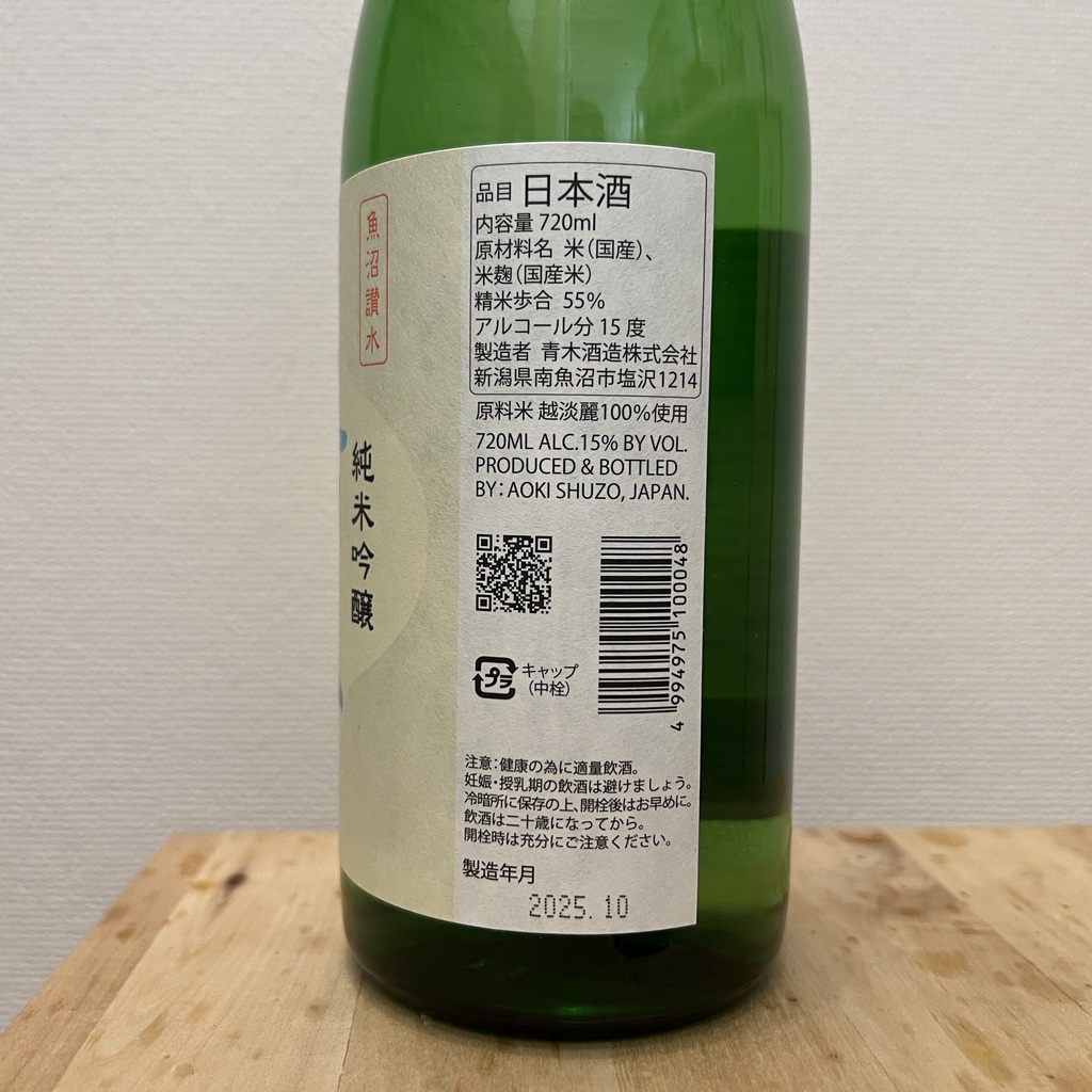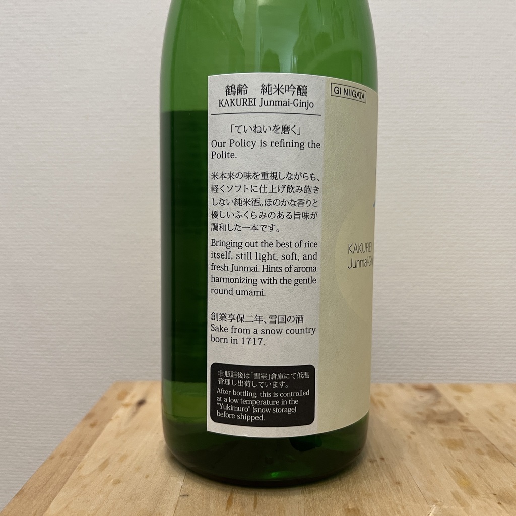 2026-01-01 日本酒鶴齢 純米吟醸 青木酒造鶴齢 純米吟醸 青木酒造 家では何度か飲んでる鶴齢の純米吟醸前に飲んだときより旨味が増してフルーティーさが抑えられてるような気もする 精米歩合:55%アルコール数:15%
