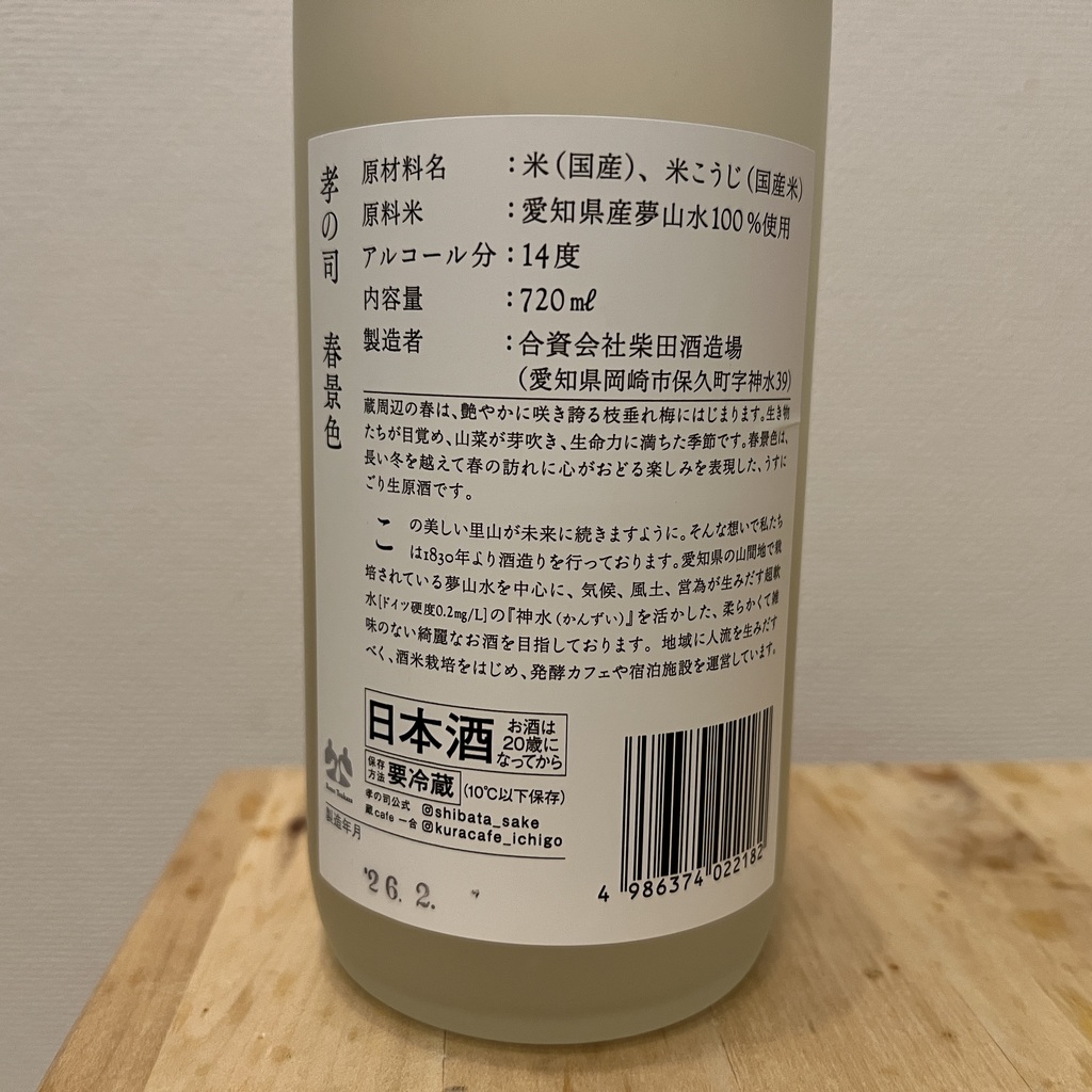 孝の司 春景色 純米吟醸 うすにごり 生原酒 柴田酒造場