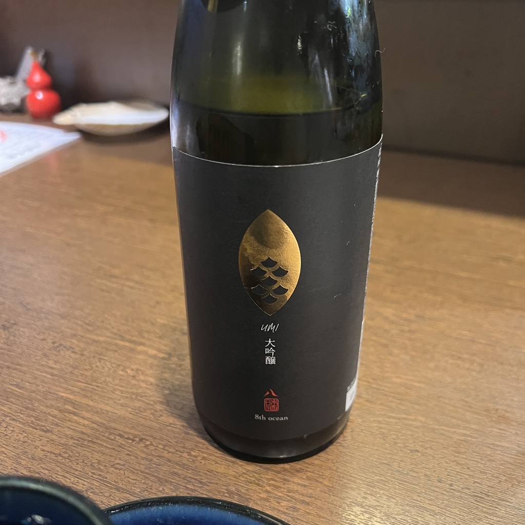 2026-04-17 日本酒大吟醸 8th Ocean UMI エイスオーシャン 海大吟醸 8th Ocean UMI エイスオーシャン 海 外飲みでどこまでが商品名でどこまでがブランド名、会社名なのかわからないお酒海琳堂ってとこが販売元で、そこが扱っている深川リキュルラボの8th Oceanっていうブランド?かな?口当たりはスッキリしているが、華やかと言うよりは旨味系なお酒燗映えとかするかもしれない 精米歩合:50%アルコール数:14〜15%