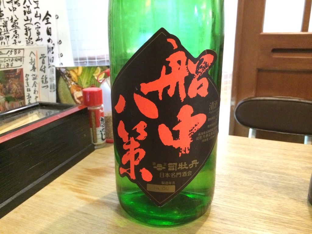 2014-12-30 日本酒 船中八策 純米超辛口 司牡丹酒造 辛口のお酒です。お燗のが美味しかったです。 これも前に飲んだ悦凱陣の印象が強すぎて、あまり覚えてないです。 原料米:山田錦、松山三井 精米歩合:60% アルコール度:15〜16度 日本酒度:+8 酸度:1.4 酵母:熊本酵母