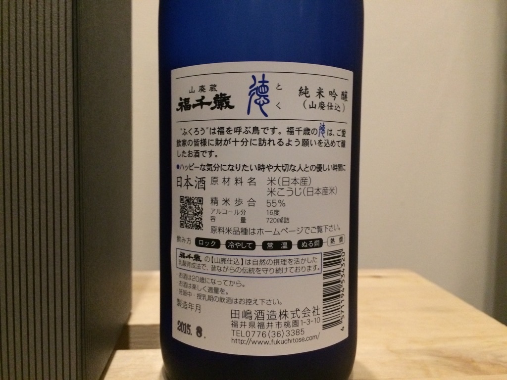 福千歳 徳 純米吟醸 山廃仕込 田嶋酒造