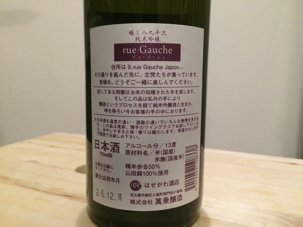醸し人九平次 純米吟醸 rue Gauche(リュ・ゴーシュ) 萬乗醸造