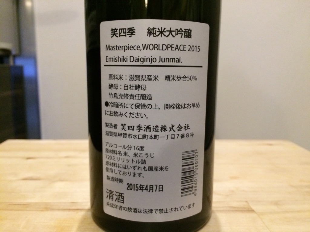 笑四季 純米大吟醸 WORLDPEACE2015 笑四季酒造