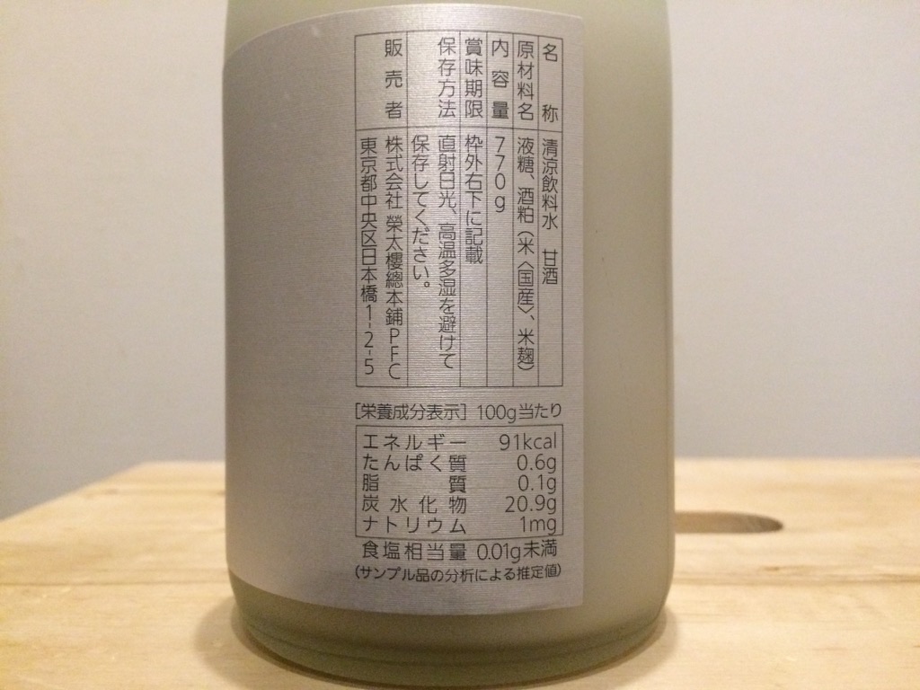 2016-11-28 甘酒 和菓子屋のあま酒 榮太樓×獺祭 近所のスーパーに980円くらいで売ってた甘酒 獺祭の酒粕を使ったコラボ商品の一つだろう とにかくやたら甘い 液糖に酒粕の風味だけつけたんじゃないかってくらい甘い 全部飲めなかった 獺祭はこんなところとコラボしないで、米麹から作るちゃんとした甘酒をオフィシャルで出したほうがいいと思う。